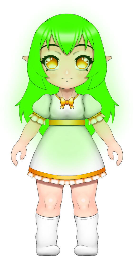 The spirits are small chibi girls with a height of seven centimeters who can fly. They can't speak but they have very distinct personalities and can use their elemental power on a small scale.