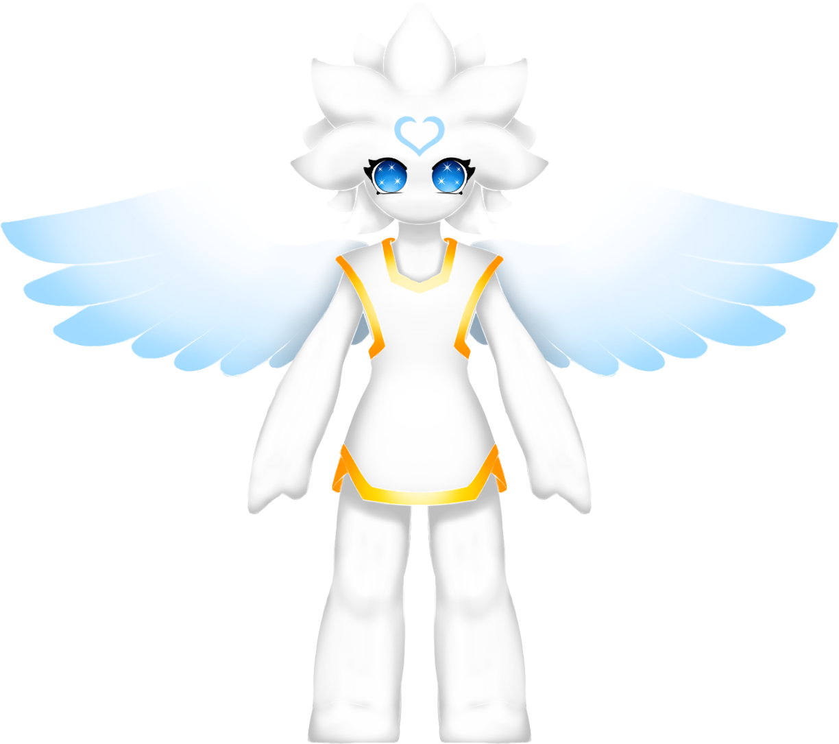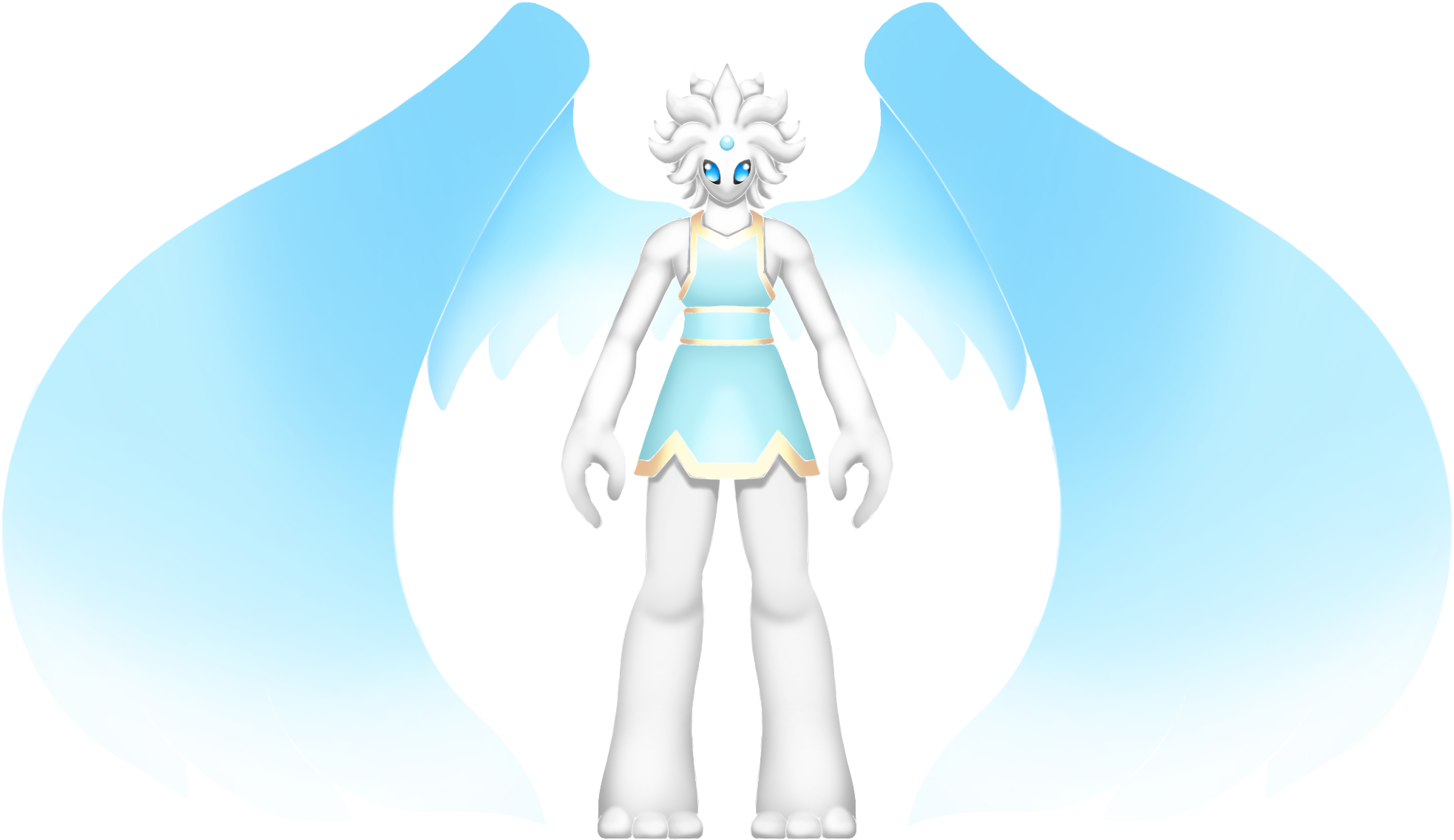 Their wings store gravitational energy allowing them to float in the sky with a good stability. They have no blood and have an extremely high vitality energy, allowing them to survive even if their head is cut off. They don't have a mouth but they absorb energy from their surrounding to sustain Themselves. Additionally, if they lack energy they simply fall in a sleeping state where they are still conscious, they don't need to sleep otherwise. They don't feel pain either. They communicate by telepathy by using visuals, concepts and intent instead of words. Moreover, they do not have a gender and are mostly androgynous.